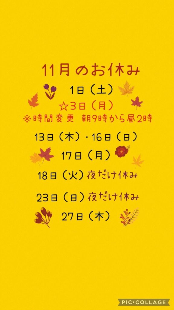 « 11月のお知らせ!